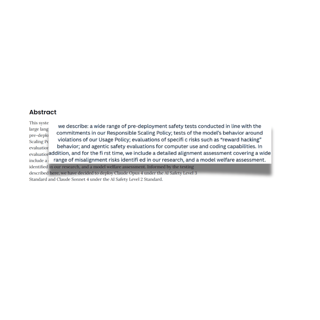 By examining the Claude 4 models as a reference, we will highlight the importance of documenting not only the technical aspects of AI systems but also the safeguards and policies that guide their responsible use. Due to the length of such paper, we will cover specific sections and raise question on some others, but you should invest time reading those pages.